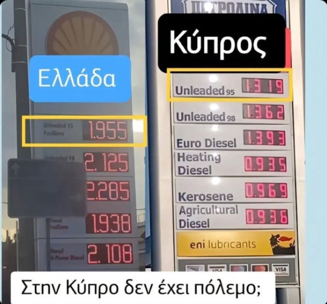 Αφωνο το πανελλήνιο με την διαφορά στην τιμή της βενζίνης σε Ελλάδα και Κύπρο