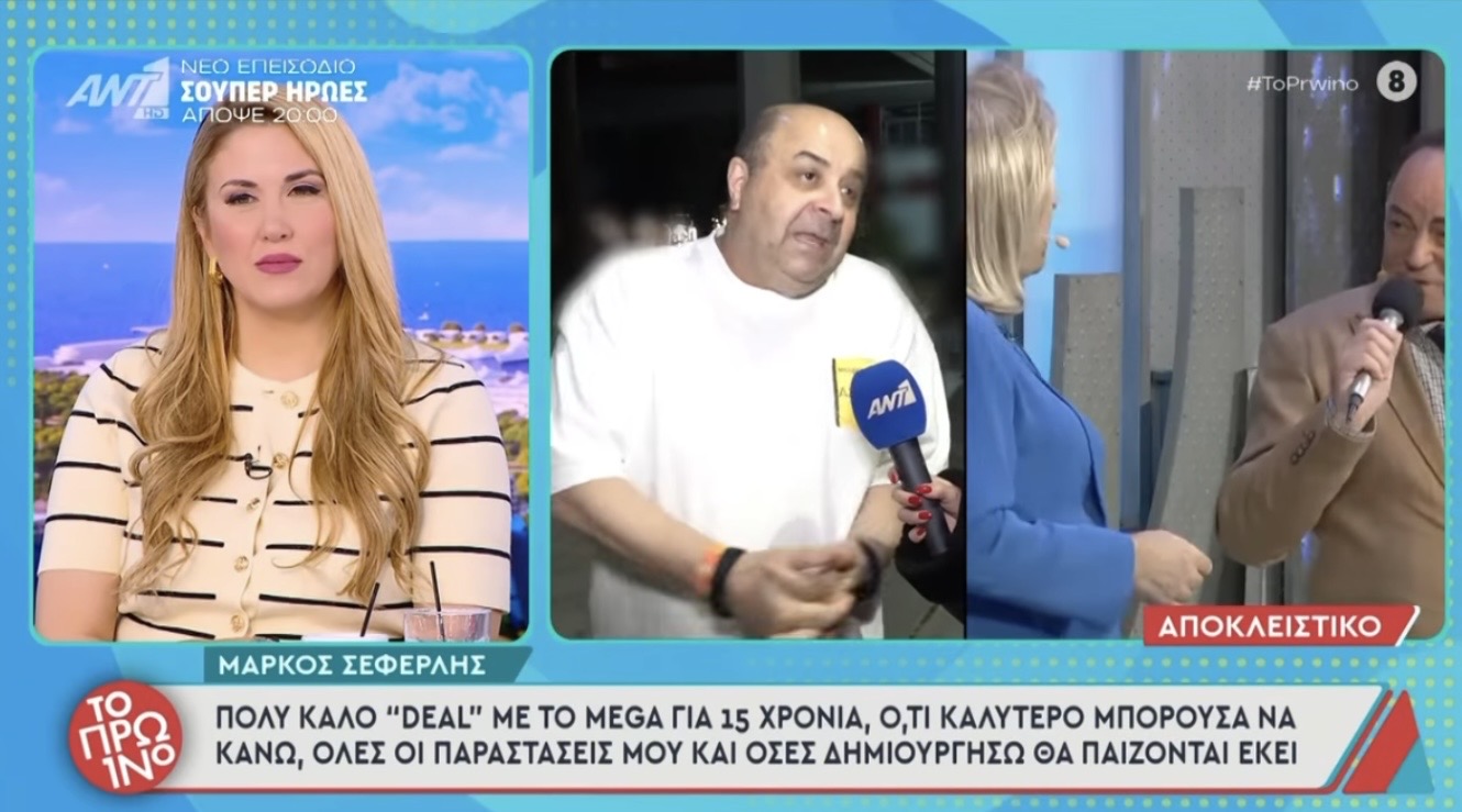 Home / VIRAL / Σάλος με τον Μάρκο Σεφερλή στο πρωινό του Γιώργου ΛιάγκαVIRALΣάλος με τον Μάρκο Σεφερλή στο πρωινό του Γιώργου ΛιάγκαApril 8, 2026Σάλος με τον Μάρκο Σεφερλή στο πρωινό του Γιώργου Λιάγκα Συνεχίστε την ανάγνωση Please follow and like us: Share this ArticleTagged:ΜΑΡΚΟΣ ΣΕΦΕΡΛΗΣPrevious ArticleΗ γκάφα που τους πρόδωσε: Προσυμφωνημένη η «λύση» στο παρά πέντε για εκεχειρία ΗΠΑ-ΙράνNext ArticleΚωστής Σαββιδάκης: Η συγκλονιστική περιγραφή του ηθοποιού για το «θείο σημάδι» που του έσωσε τη ζωή!kalinda Related Posts Φραντς Κάφκα: Πιθανότατα θα χάσεις ό,τι αγαπάς, αλλά στο τέλος, η ... April 15, 2026 Η εξομολόγηση του Αρη Μουγκοπετρου για τις στιγμές τρόμου που έζη ... April 15, 2026 Ζωζώ Σαπουντζάκη: Η φίλη της σπάει τη σιωπή της για την πραγματικ ... April 15, 2026