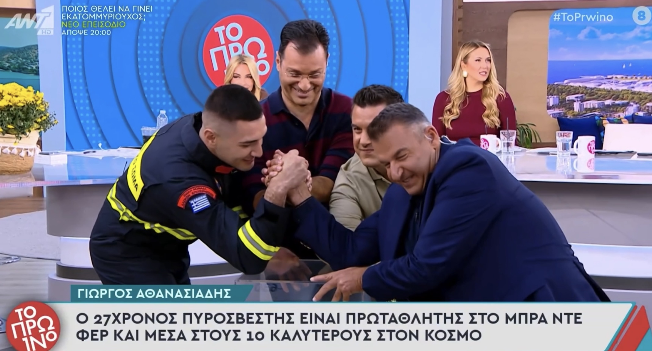 Τραυματίστηκε ο Γιώργος Λιάγκας στον αέρα της εκπομπής του κάνοντας Μπρα Ντε Φερ με πυροσβέστη